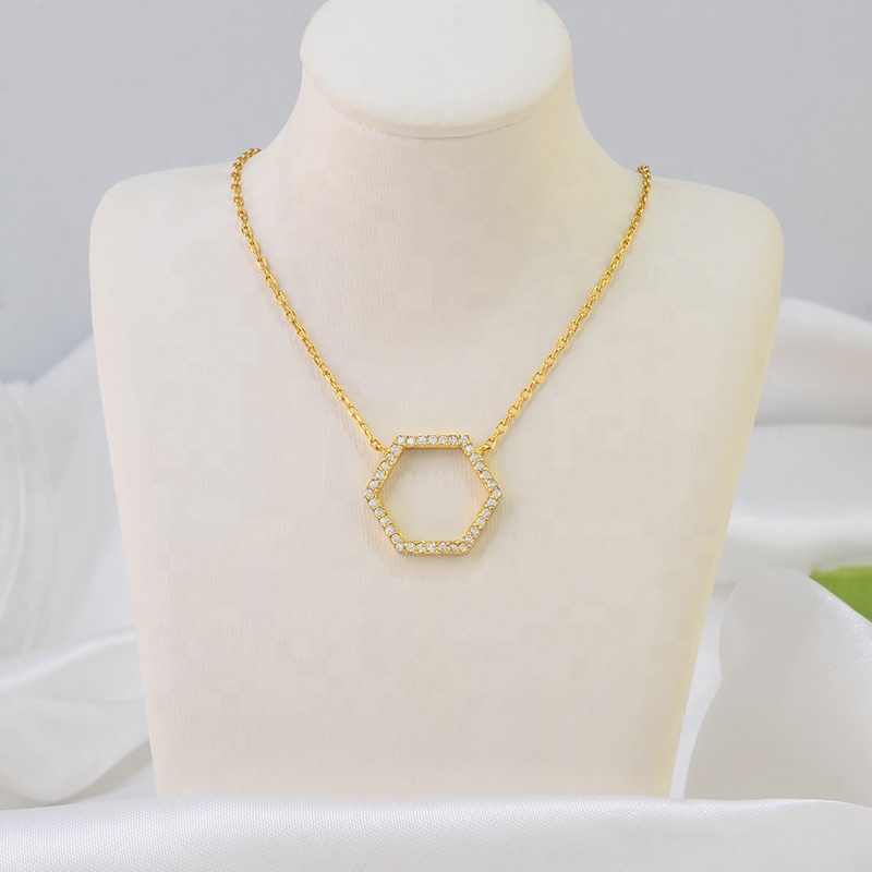 Geometry Fashion Design High Quality Light Luxury18K Gold Plated Zircon Stone Pendant Necklace S925 Sterling Silver Jewelry