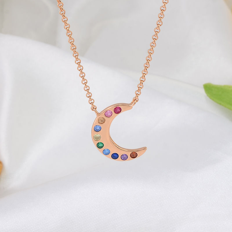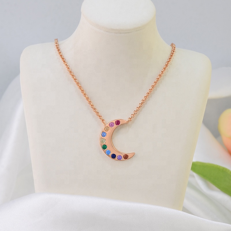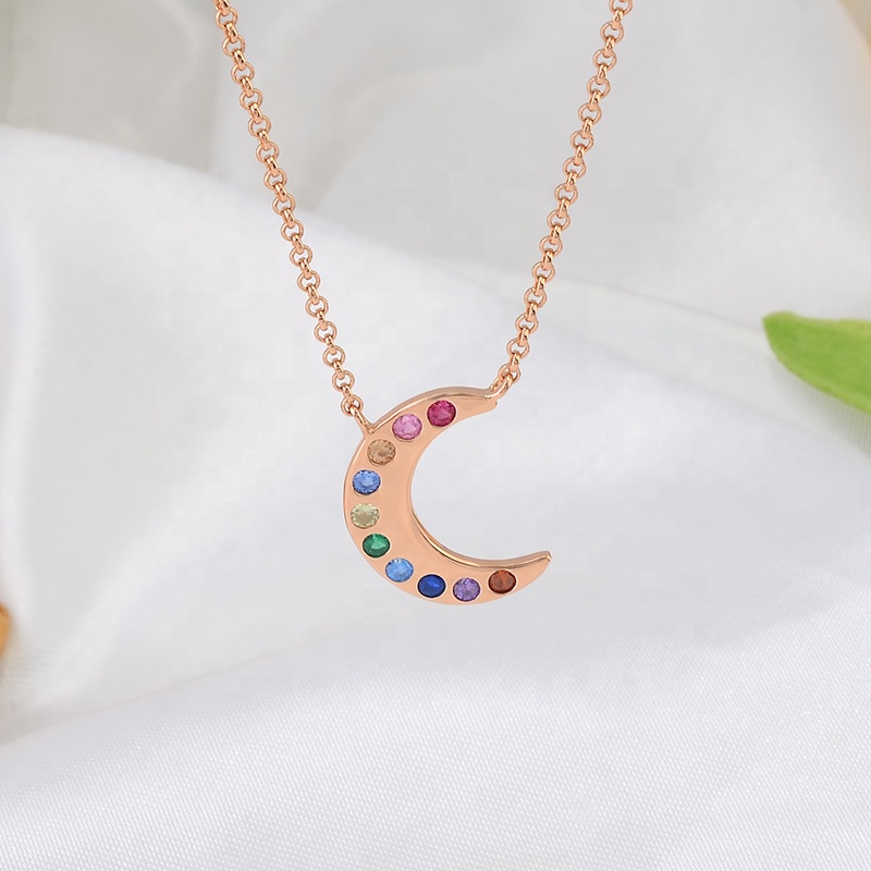 New Arrivals Colorful Stone Charming Moon 18 K Gold Plated S925 Sterling Silver Pendant Necklace Jewelry Necklace For Women
