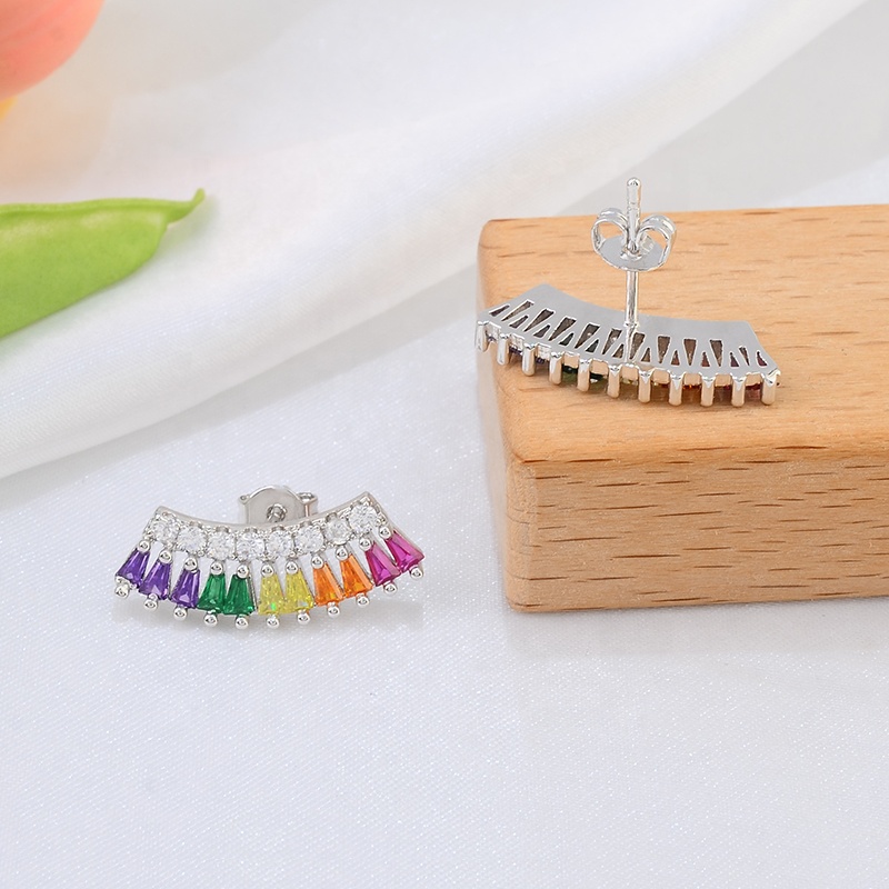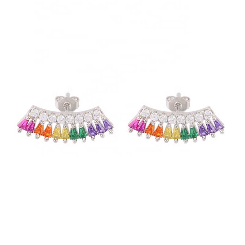 Multi Color Ice Out CZ Stone Rainbow Charm Earring Wholesale Rainbow S925 Sterling Silver Stud Earring Jewelry