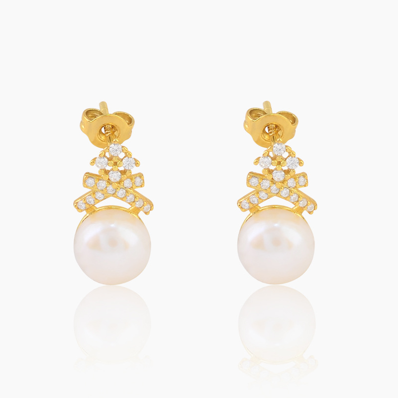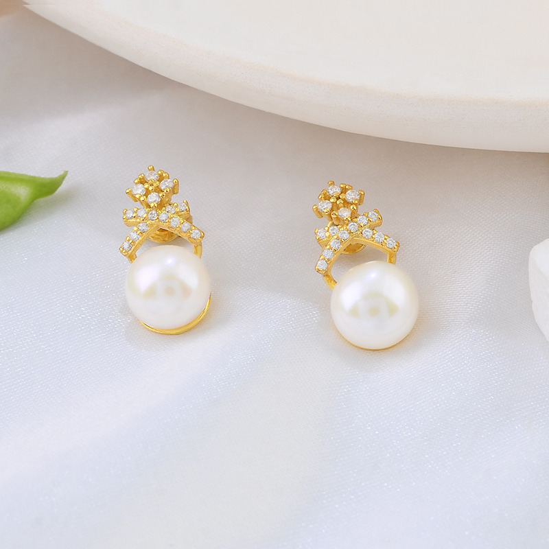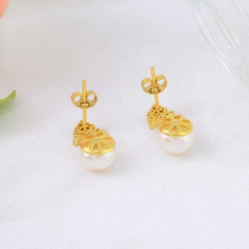 New Fashion S925 Sterling Silver Pearl Crown Earrings with Elegant and Exquisite Earrings for Women