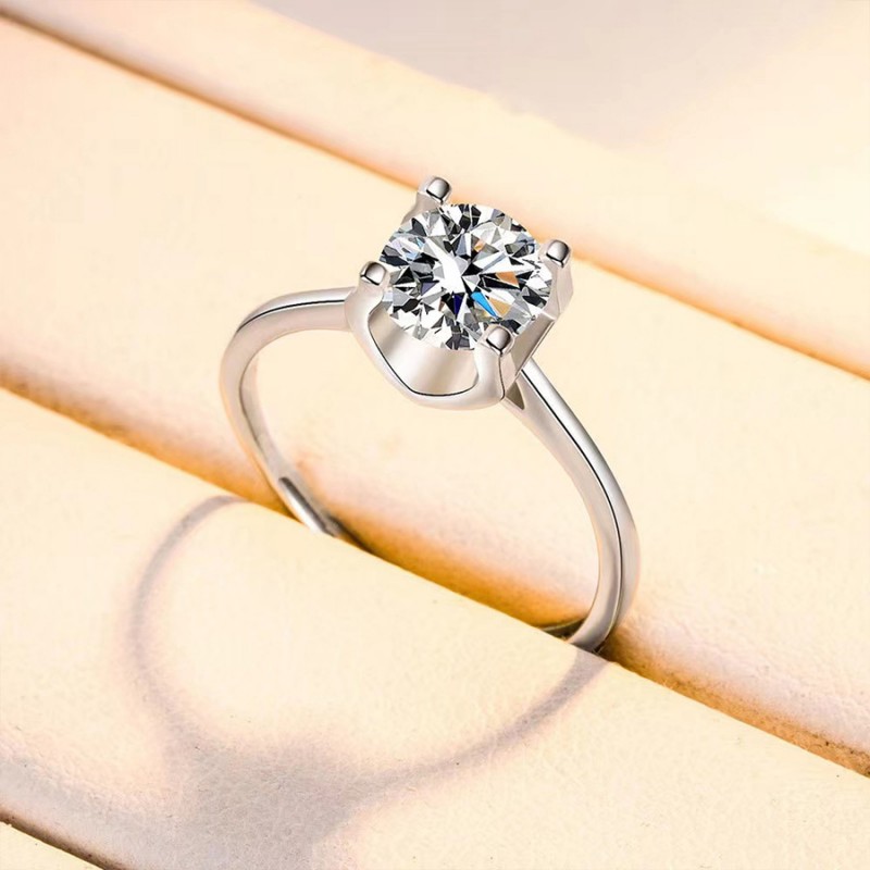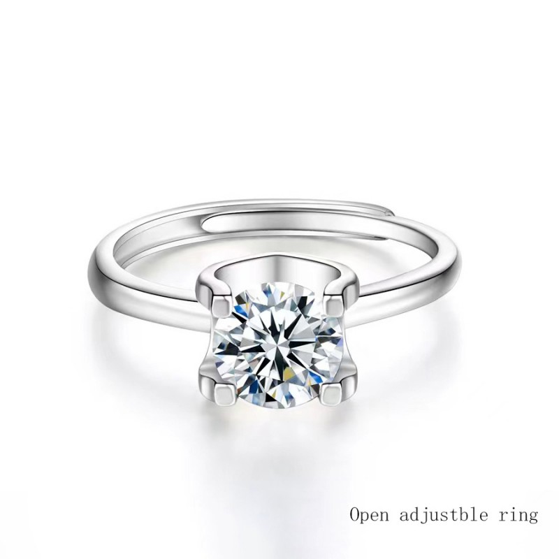 Custom Wedding Jewelry 18k Solid Gold Plated Ring S925 Sterling Silver Moissanite 1 CT Open Adjustable Ring Jewelry